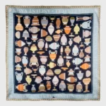 The motifs and original artwork of this scarf draw inspiration from ancient Greek jewelry, currently showcased in some of the most renowned museums.  Greek craftsmen were responsible for crafting some of the most intricate gold jewelry in the ancient world, often drawing inspiration from nature.
