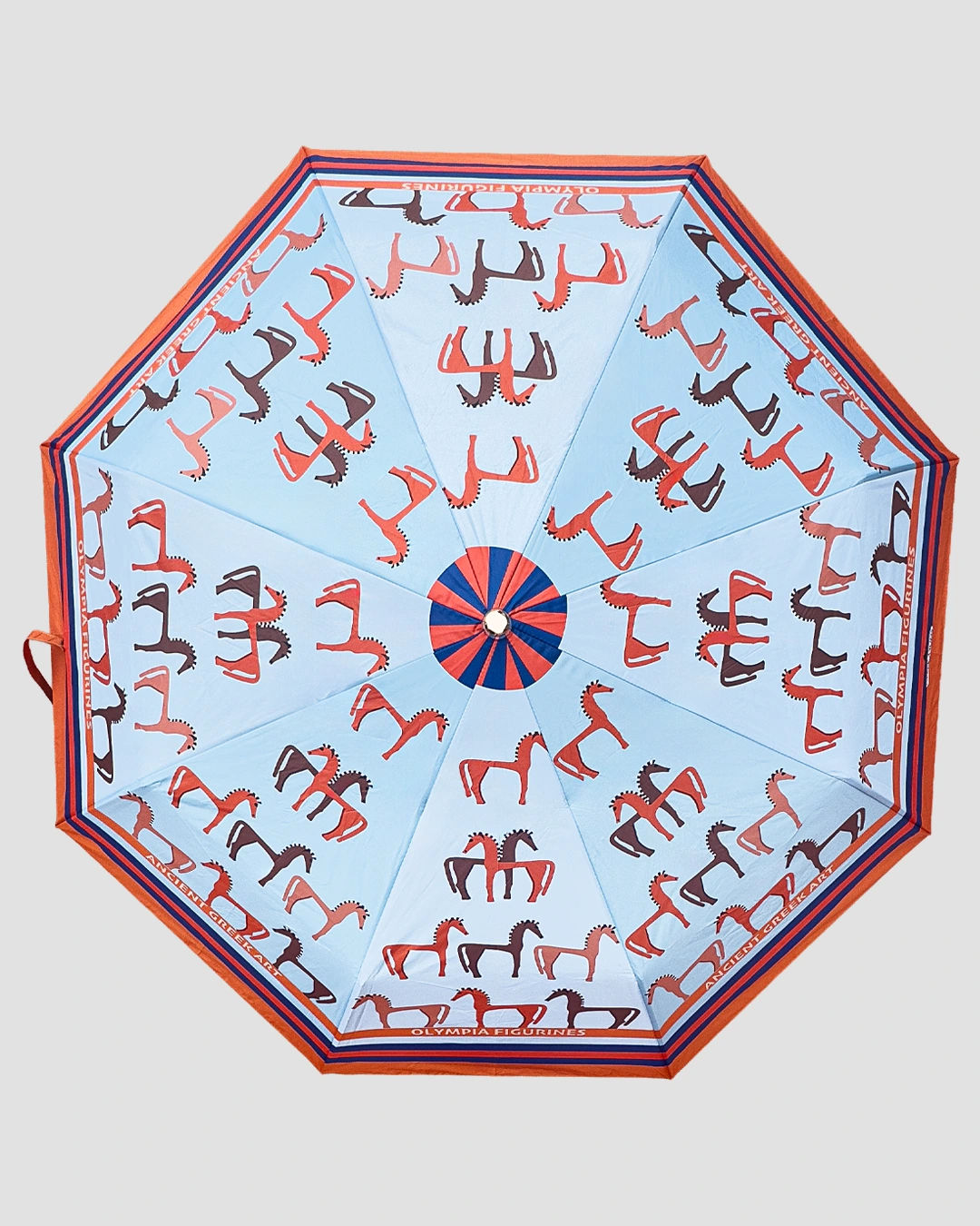 The beautiful little horses of the 8th century BC from Olympia are the source of inspiration for this umbrella. The originals were made of metal and were offerings to the sanctuary. An original artistic composition exclusively designed by Greek Angels.